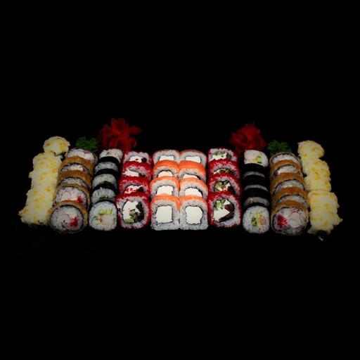 Состав: ролл МиниФилка, ролл флорида с копченым лососем, ролл Креветка огурец, запеченый крабик, горячий краб Имбирь-3шт Васаби-3шт Соус соевый-3шт Количество: 46шт Вес: 1200гр