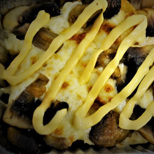 Состав: картофель по деревенски , курица, шампиньоны, соус для запекания, бургер соус Вес: 220гр